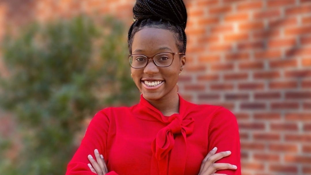 To the left is a picture of a smiling young woman, wearing red, arms crossed. It's the perfect introduction to this advocate and CEO, one of Tallahassee's 5 Young Women to Watch.