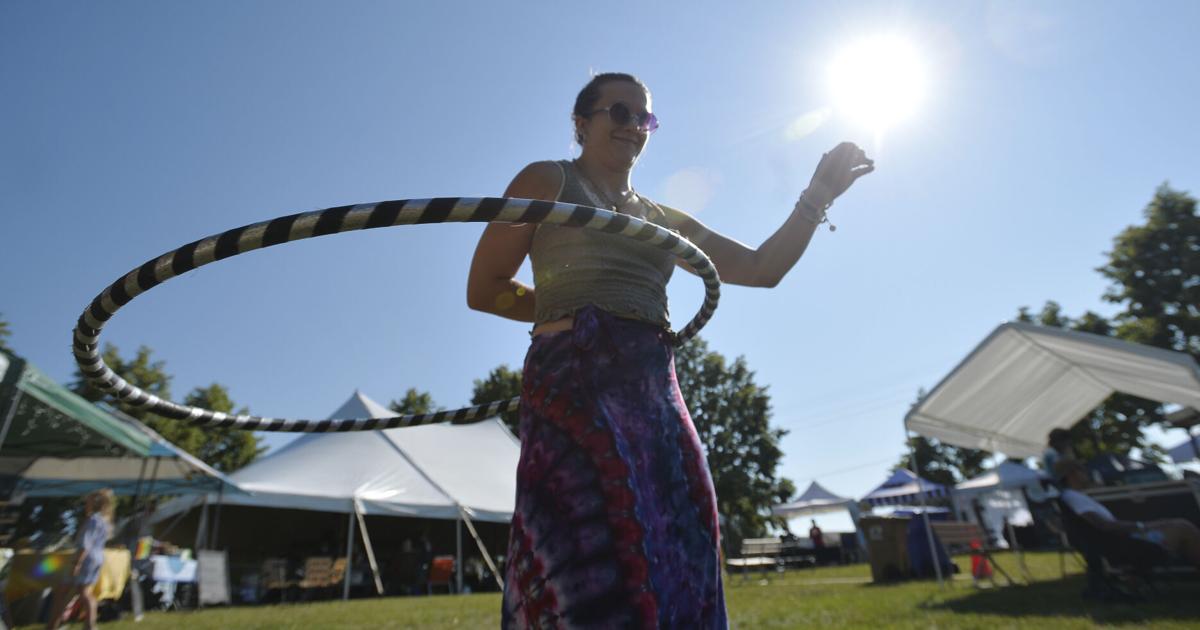 Above: Georgia Rae plays with a hula hoop during the Peace Tree Music Festival at the band shell in Pennoyer Park on Friday. Below: Honey Cellar performs on stage during the Peace Tree Music Festival at the bandshell in Pennoyer Park on Friday.